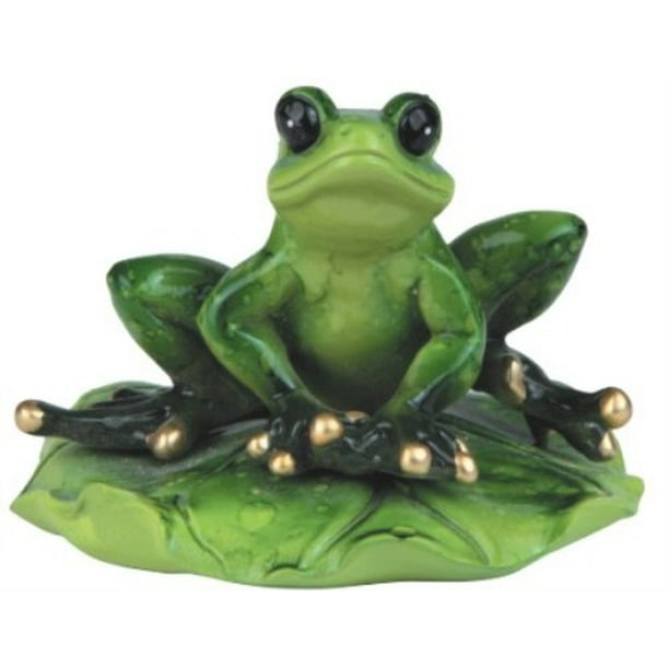 3 25 Inch Green Frog Sitting On A Lily Pad With Black Eyes Figurine Walmart Com